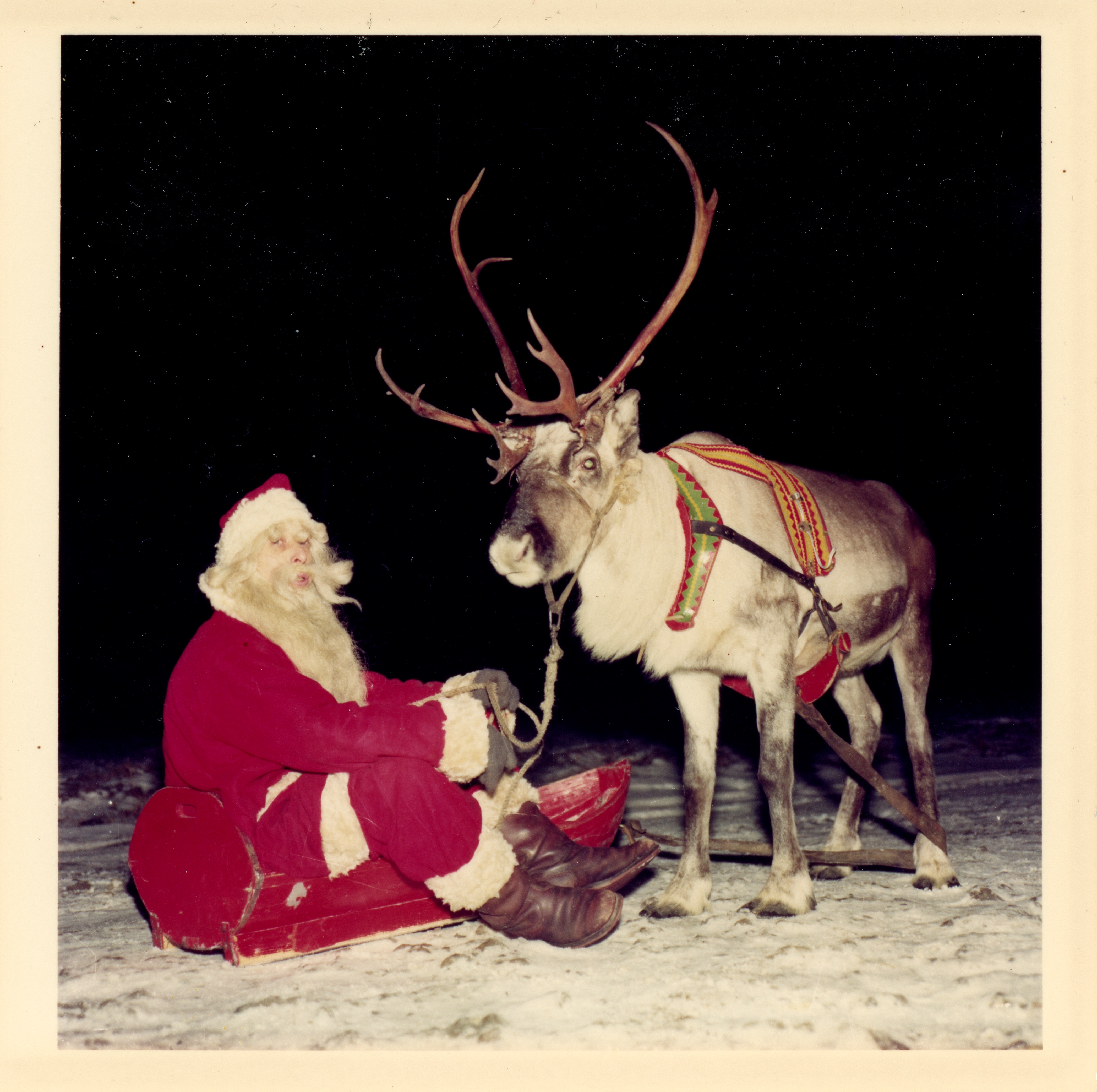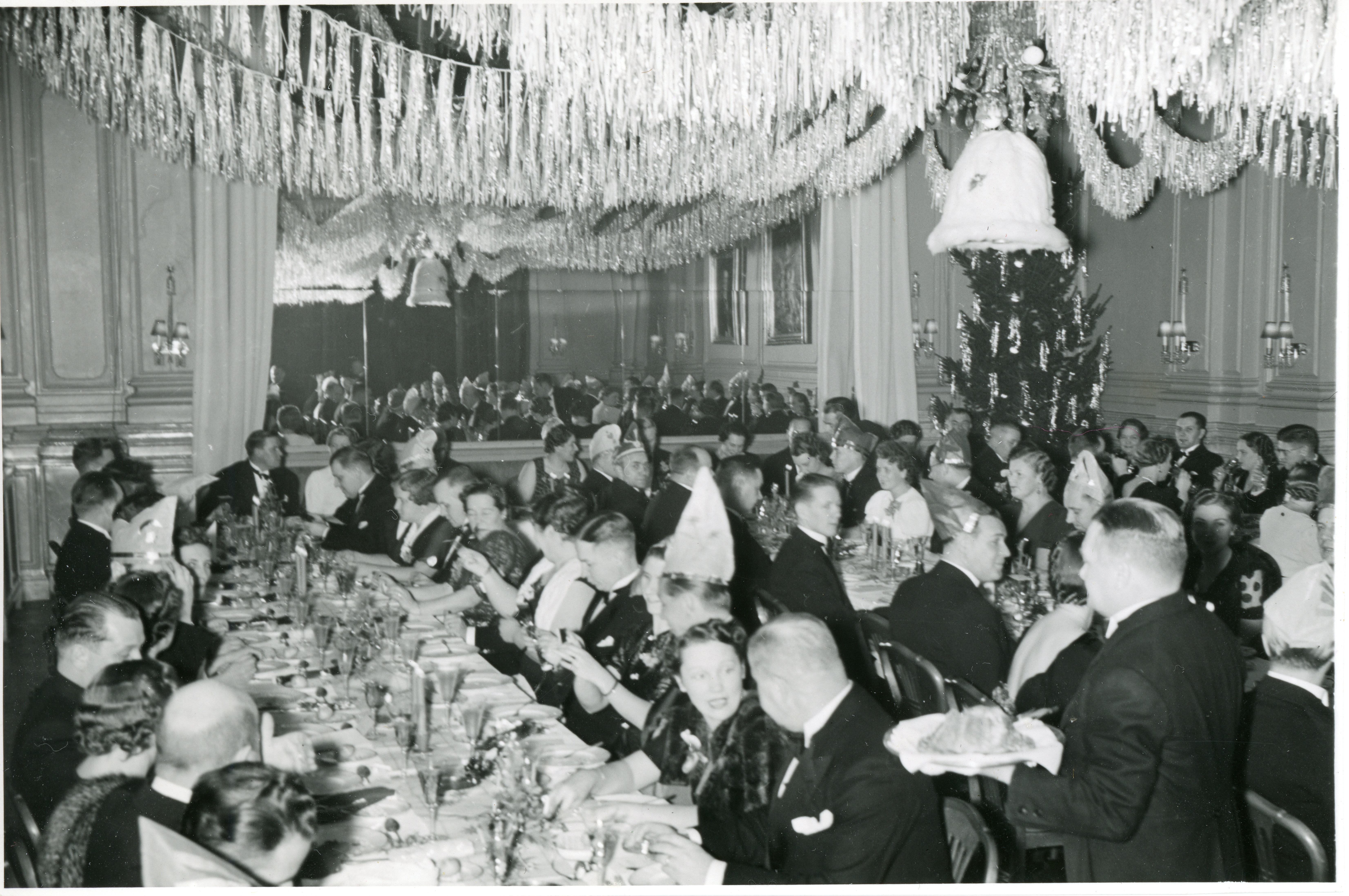 Artikkelikuva: Joulupukki esiintyy Primulan henkilökunnan pikkujouluissa 1955. Hotelli- ja ravintolamuseon kokoelma.
