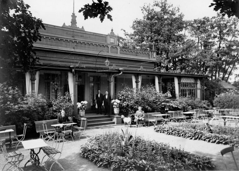 Ravintola Kaisaniemen ulkopuolella seisoo ravintolan henkilökuntaa.