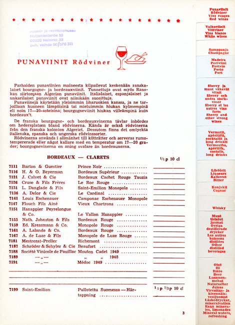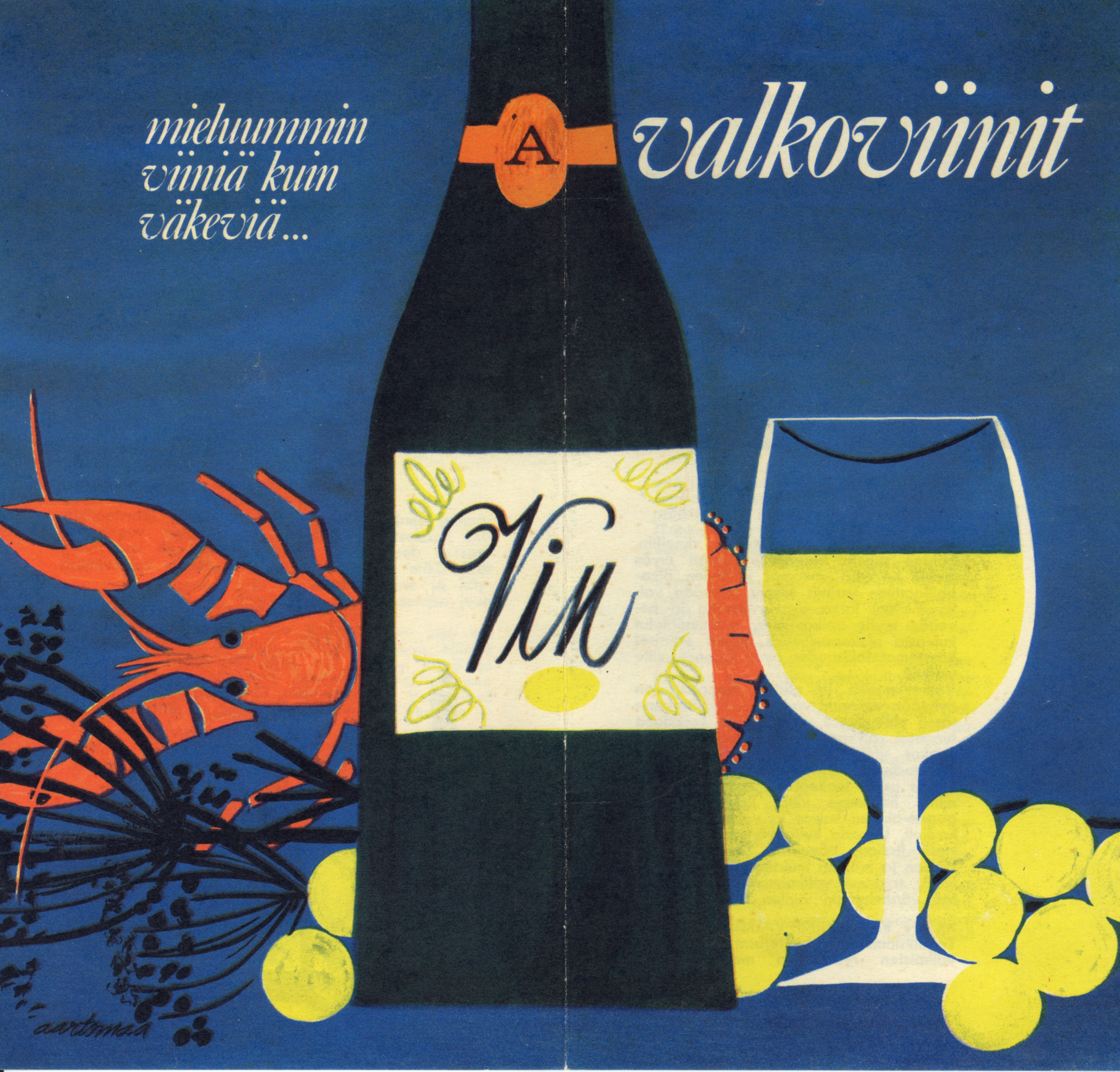 Artikkelikuvassa Alkon viiniesite Hotelli- ja ravintolamuseon kokoelmista.