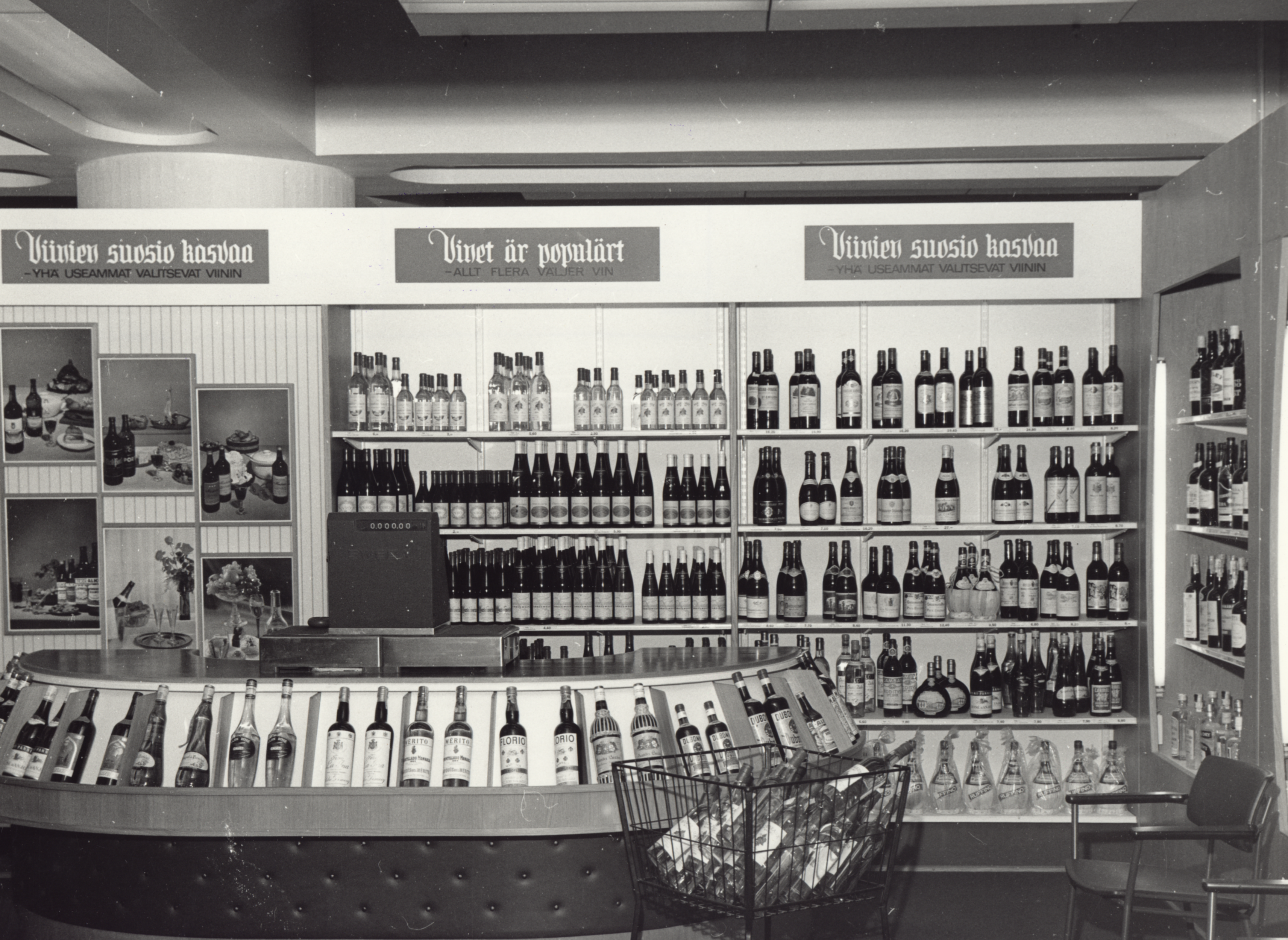 Vuonna 1949 alkoholipolitiikka suosi eritoten viinejä, sillä viinien ostoon ei tarvinnutkaan enää viinakorttia, ja viinien ja muiden mietojen alkoholijuomien hintoja laskettiin. Lisäksi viinien asemaa vahvisti vuonna 1959 aloitettu näkyvä viinikampanja. Alkon viinikampanjan tarkoituksena oli ohjata viinahakuista kansaa miedompien alkoholijuomien pariin. Tällöin viinien hintoja laskettiin, kun puolestaan väkevien viinojen hintoja nostettiin muutamalla prosentilla. Alkon myymälöihin ilmestyi viineille omia osastoja ja viinien käyttötavoista tehtiin esitteitä. Lisäksi myymälöissä mainostettiin viinejä komeiden julisteiden avulla.