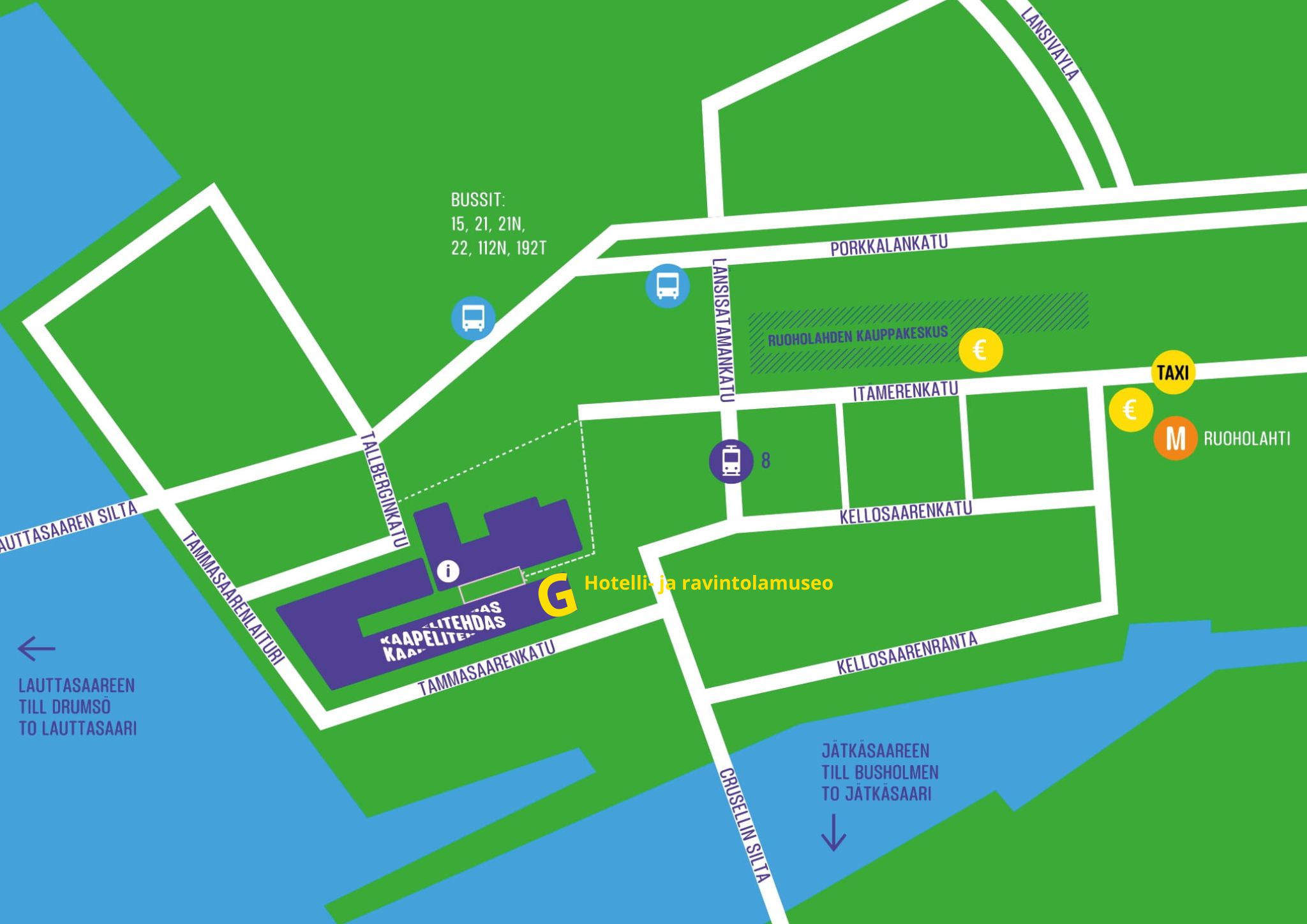 | Metro: | asema: Ruoholahti, josta noin 600 m |